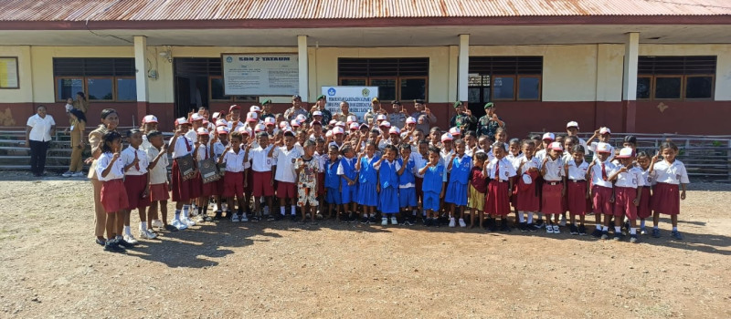 Usai kegiatan upacara, Kapolsek Amfoang Timur memberikan buku-buku membaca dan Alkitab kepada siswa-siswi SDN 2 Tataum.