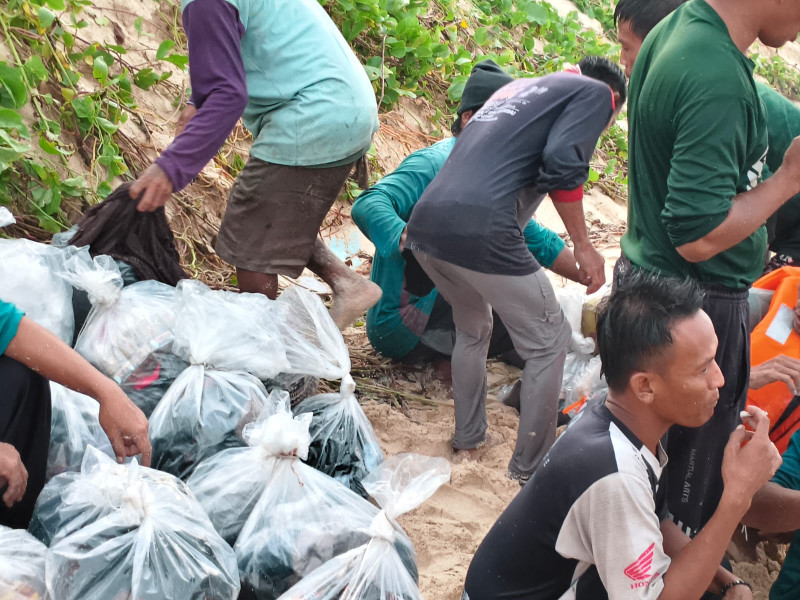 Anggota Polsek bersama keluarga korban dan masyarakat berupa mencari korban di sekitar bangkai kapal dan di sekitar pesisir pantai dekat lokasi kejadian dengan berjalan kaki menyisir sepanjang bibir pantai