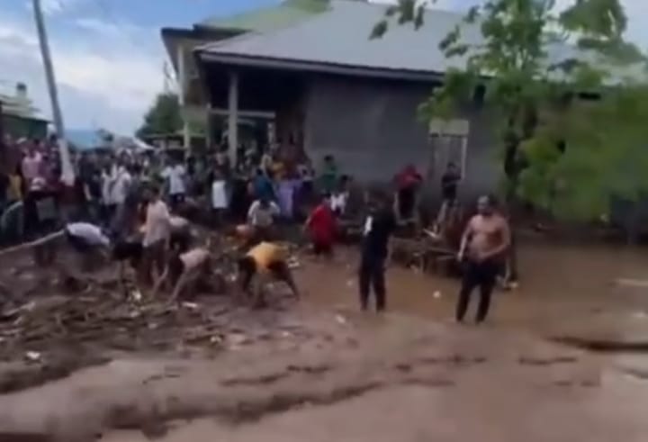 digtara.com -Dua desa di Kecamatan Adonara Timur, Pulau Adonara, Kabupaten Flores Timur, Nusa Tenggara Timur (NTT), dilanda banjir setelah diguyur hujan lebat selama beberapa jam, Kamis (18/12/2025) siang.